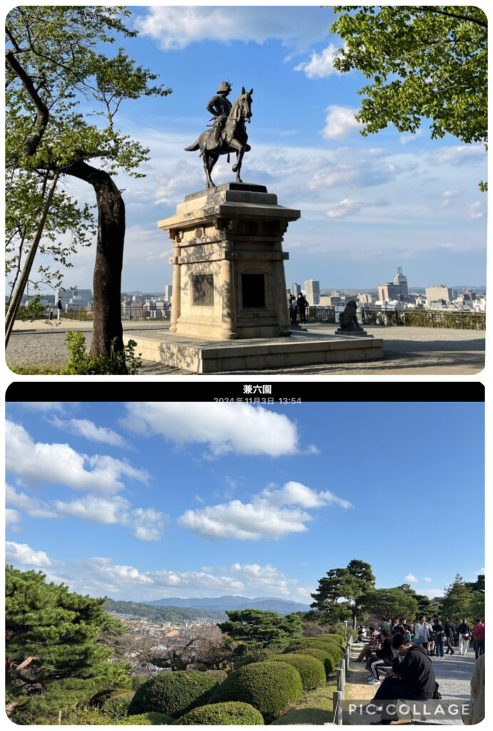 ⬇︎ 上の仙台城跡本丸は正直樹木少な過ぎな感じだけど、下の兼六園はさすがに広さも眺望も、そして何より池の作りが素晴らしく圧巻のフォトスポットで行列続きの様です。おそらく日本中の公園関係者が羨ましがってるでしょうね。