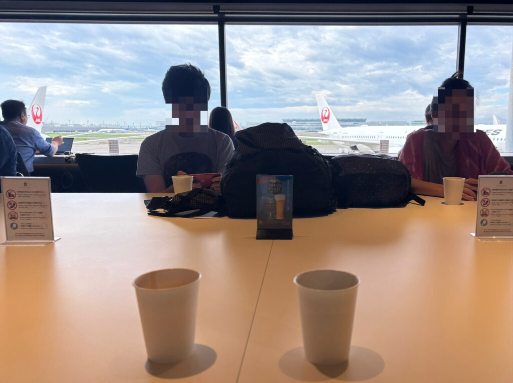 ⬇︎ こちらは羽田のカードラウンジ。驚く程人気でほとんど満席に近く、特に窓際席は一つおきに座ってる方も多いので2人だと自動的にテーブル席なります。圧倒的開放感の窓から青空と何機もの行き交う飛行機見るって、これ又ワクワク良い気分に浸れる事間違いなしです。ちなみに秋田空港のも、機体数少ないものの広々してて気持ち良いラウンジですよね。