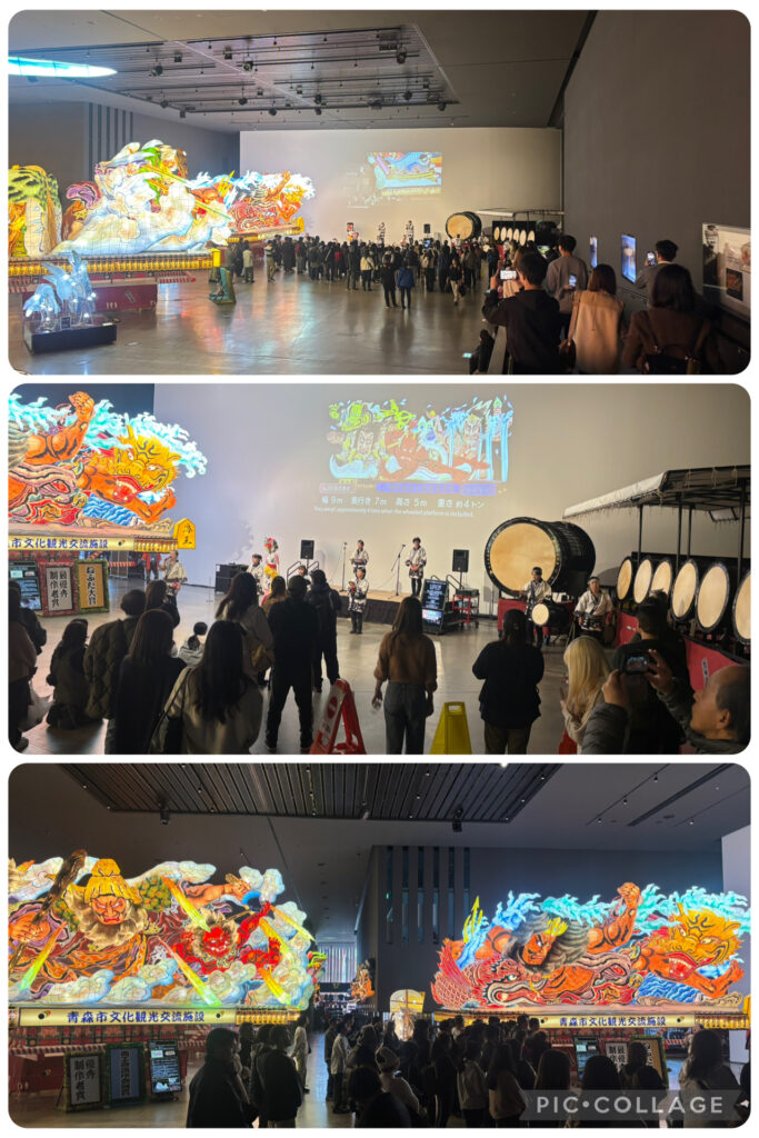 ⬇︎ 入場時からして都会的でアトラクション的なワクワク感いっぱいで、アート好きな方々にもウケそうな気がします。奥に進んでいくと、ねぶたの説明や演奏、最後は観客も一緒になって踊ったりの実演会?みたいのもありました。